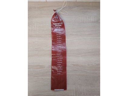 Obal na výrobu vánočního salámu. Vánočný obal se jmény , každý den odkrojíte jedno jméno. Vhodný jak na kulatý tak i lovecký salám. Kalibr 5,5 cm Délka obalu 48 cm...