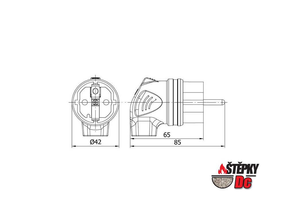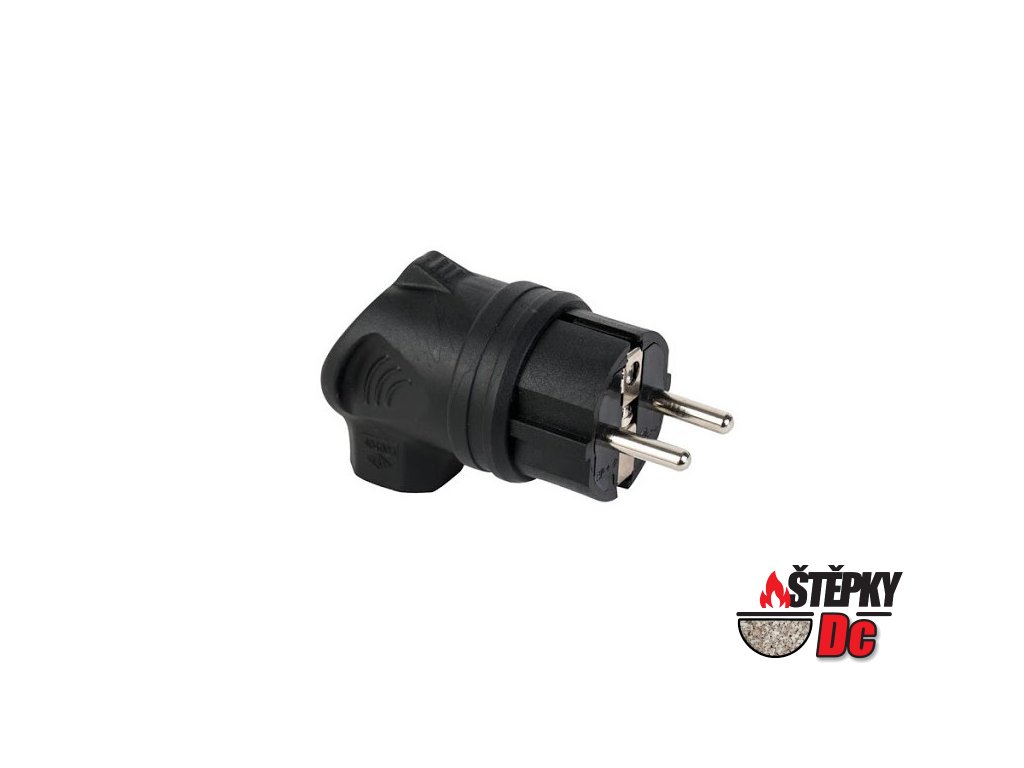 Napětí: 230 V, Proud: 16 A, Krytí: IP 44, Barva: černá, Materiál: Pouzdro TPE (termoplastický kaučuk), úhlová, vložka polyamid 6.
